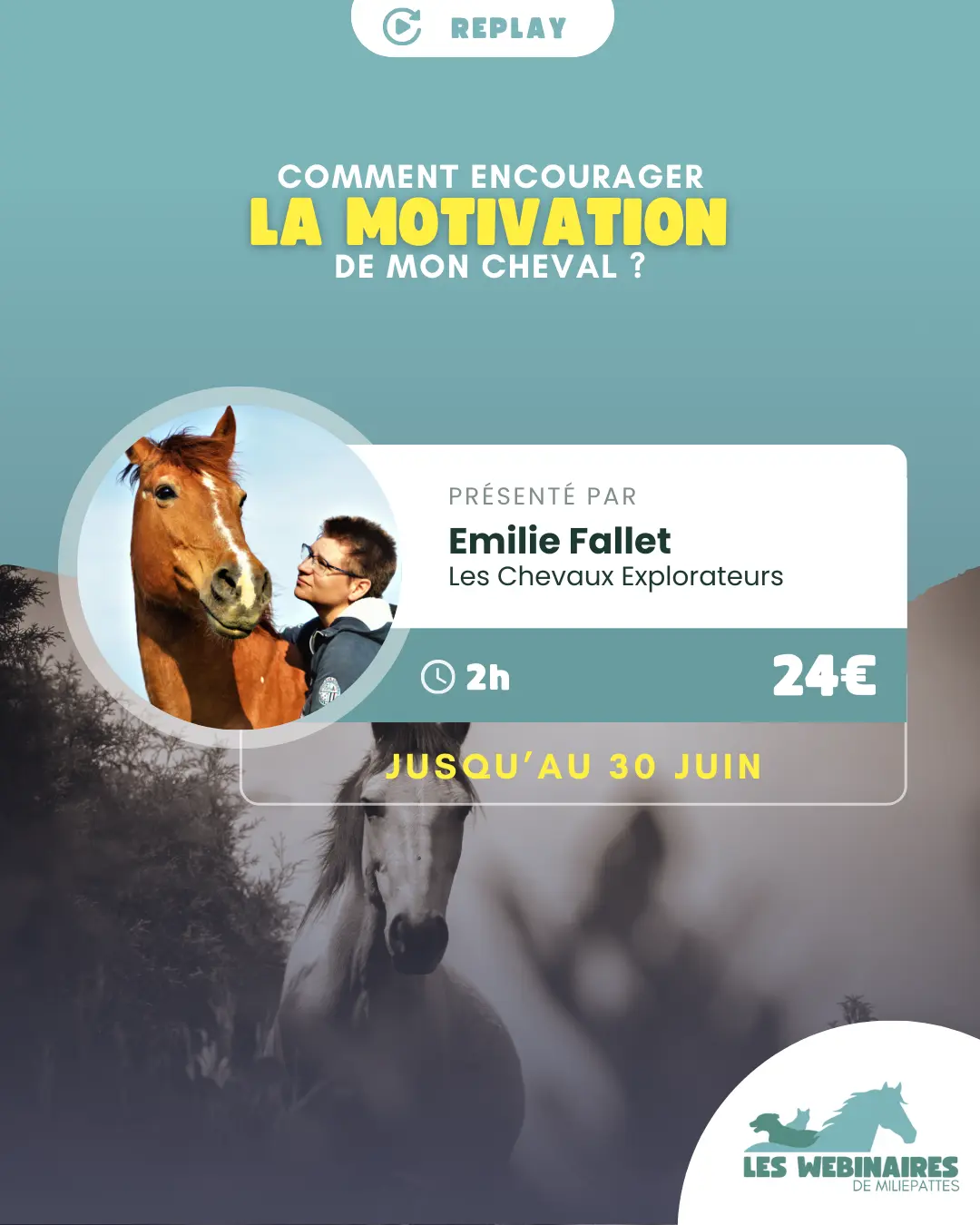 Dans ce webinaire, Emilie Fallet – Les chevaux explorateurs , te propose d’explorer la notion de motivation, et ses différentes variations.